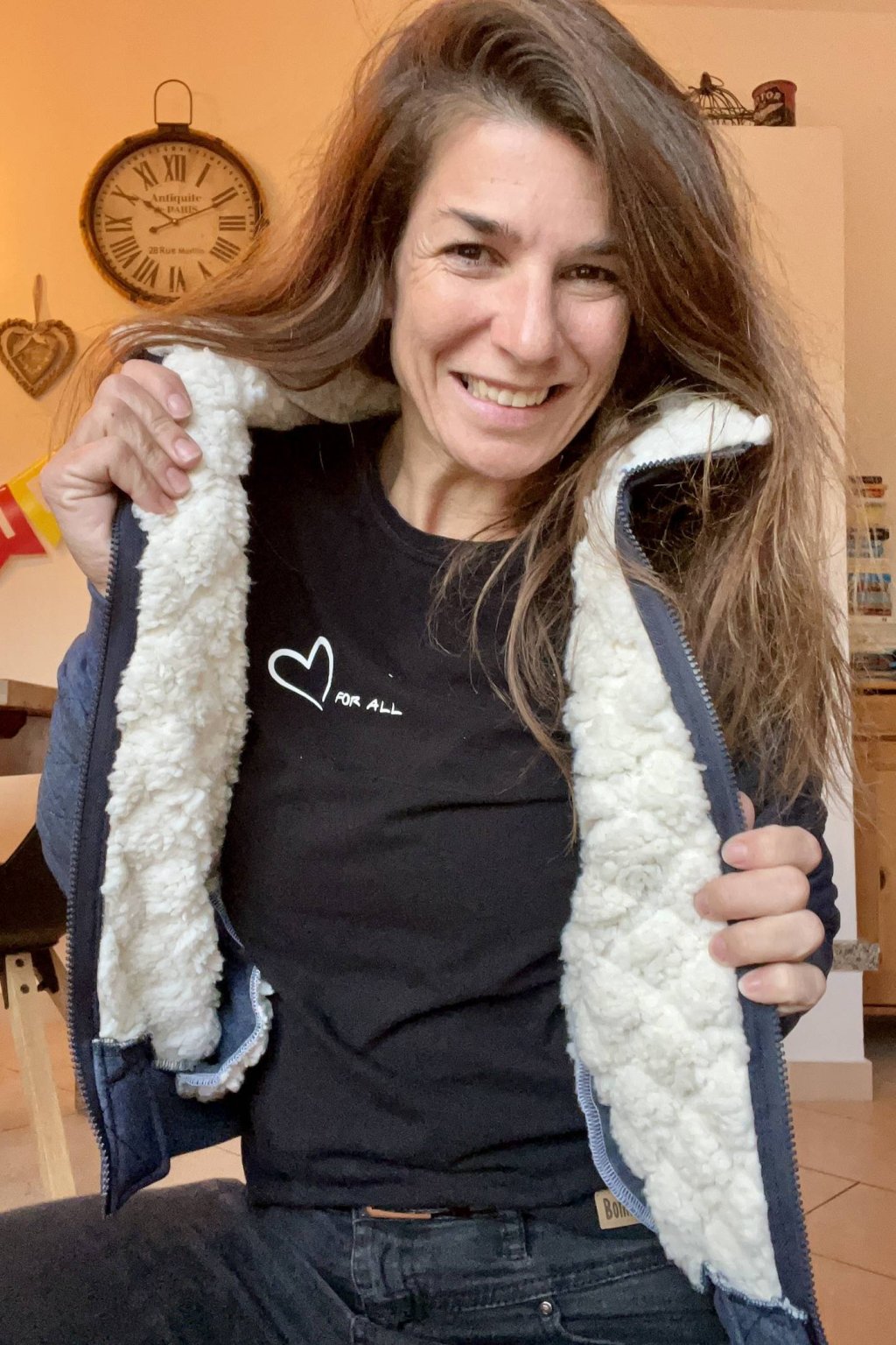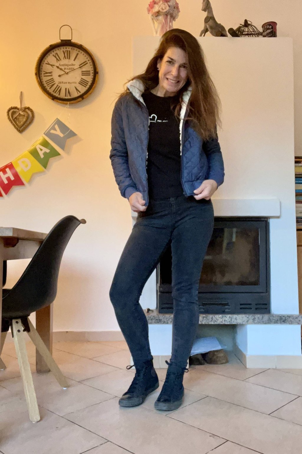 Tento kousek (na foto) je slim střihu, takže se nebojte objednat si svojí velikost ;) Na fotce velikost S (ZD 56cm) bunda sedí velikostně. Je do pasu, pokud byste uvítala delší, tak stačí napsat (+5 cm)