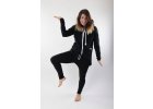 Tepláky s mírně sníženým sedem, který ale nedeformuje postavu.