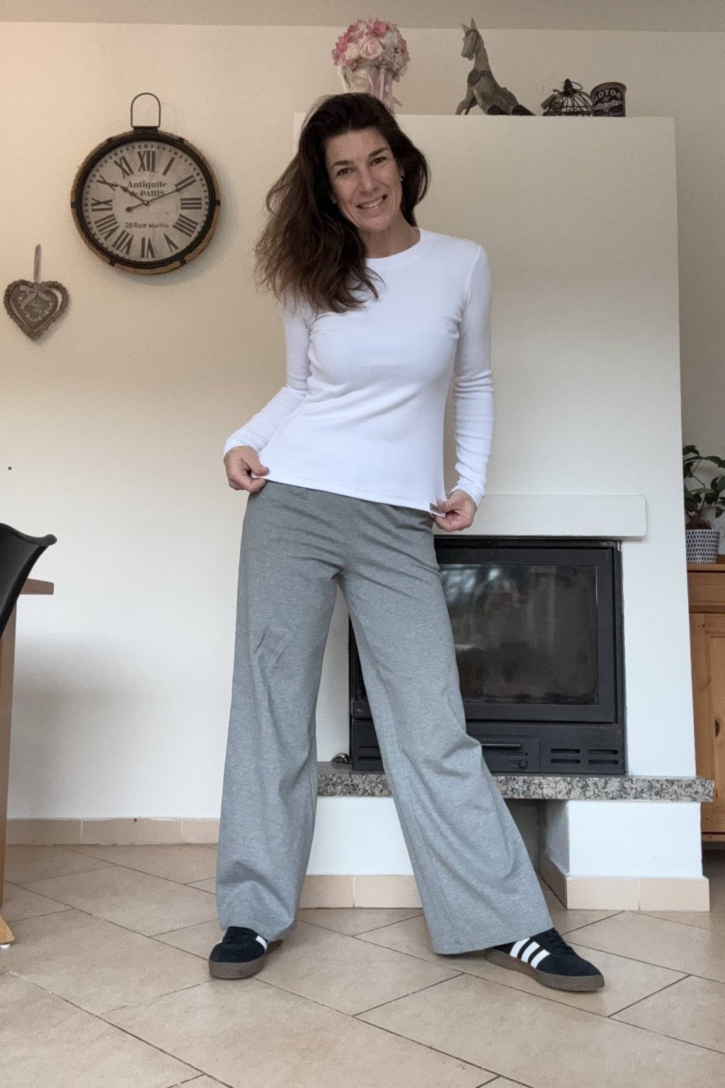 Triko je v odstínu bílá nebo černá. No a v kombinaci s našimi širokými kalhotami vypadá parádně!